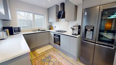 This home has been fully refurbished in the past three years, featuring a modern kitchen with an island that’s perfect for cooking and entertaining. The ceilings have built-in cinema-quality speakers, adding an amazing atmosphere for music or movies. Facing the property, there’s a lovely green space, giving a peaceful view. The house has all-new electrics and completely updated plumbing, and the boiler is only three years old. Everything is fresh, modern, and ready for the next owner to enjoy hassle-free living!