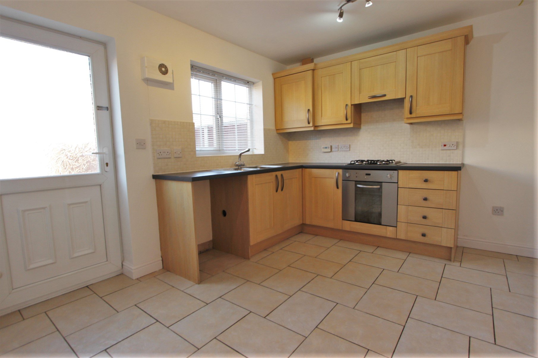 Located at the rear of the property. Comprising of a sink with drainer, oven, hob and extractor above. Plumbing space provided for a washing machine. External door leads out into the enclosed rear garden.