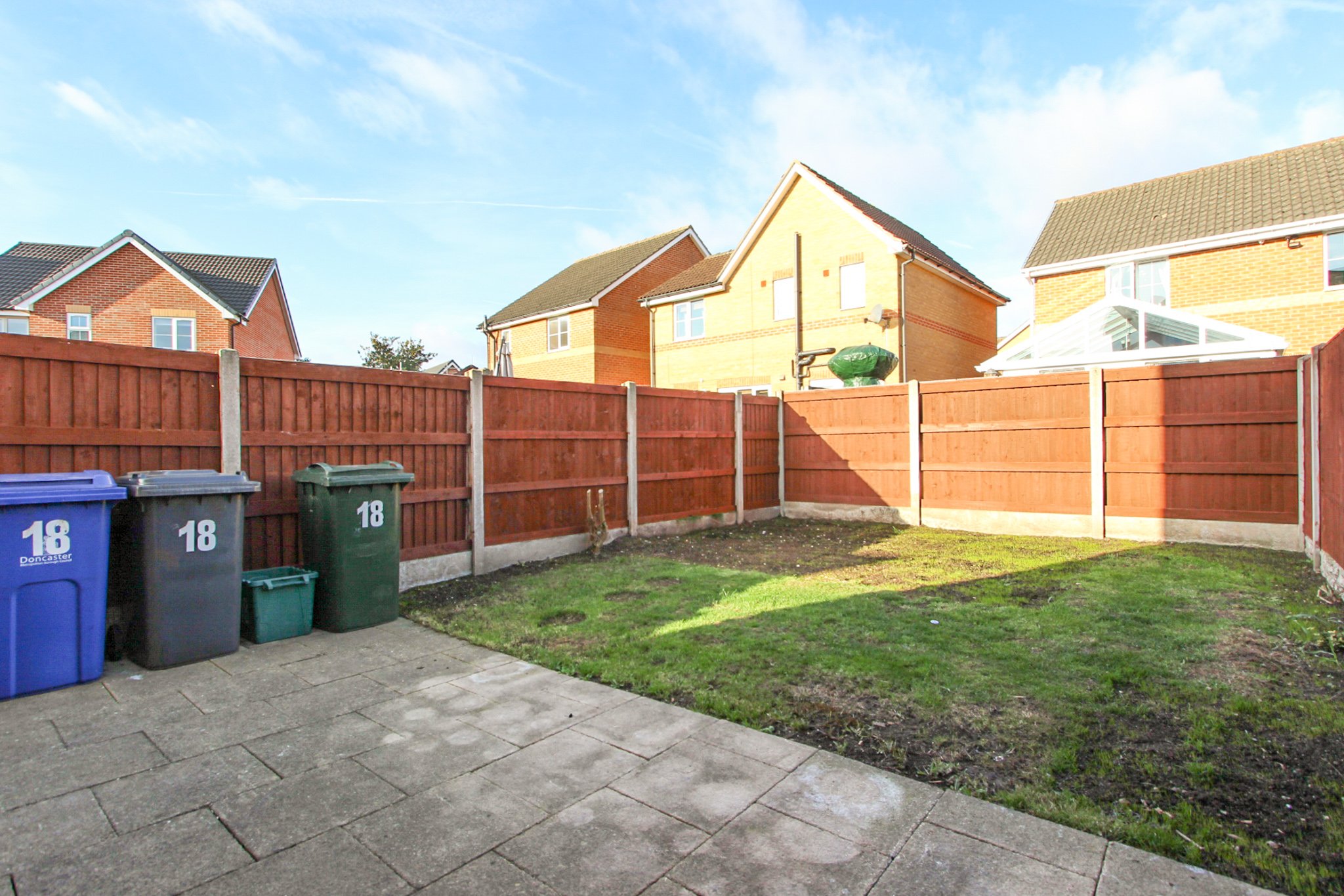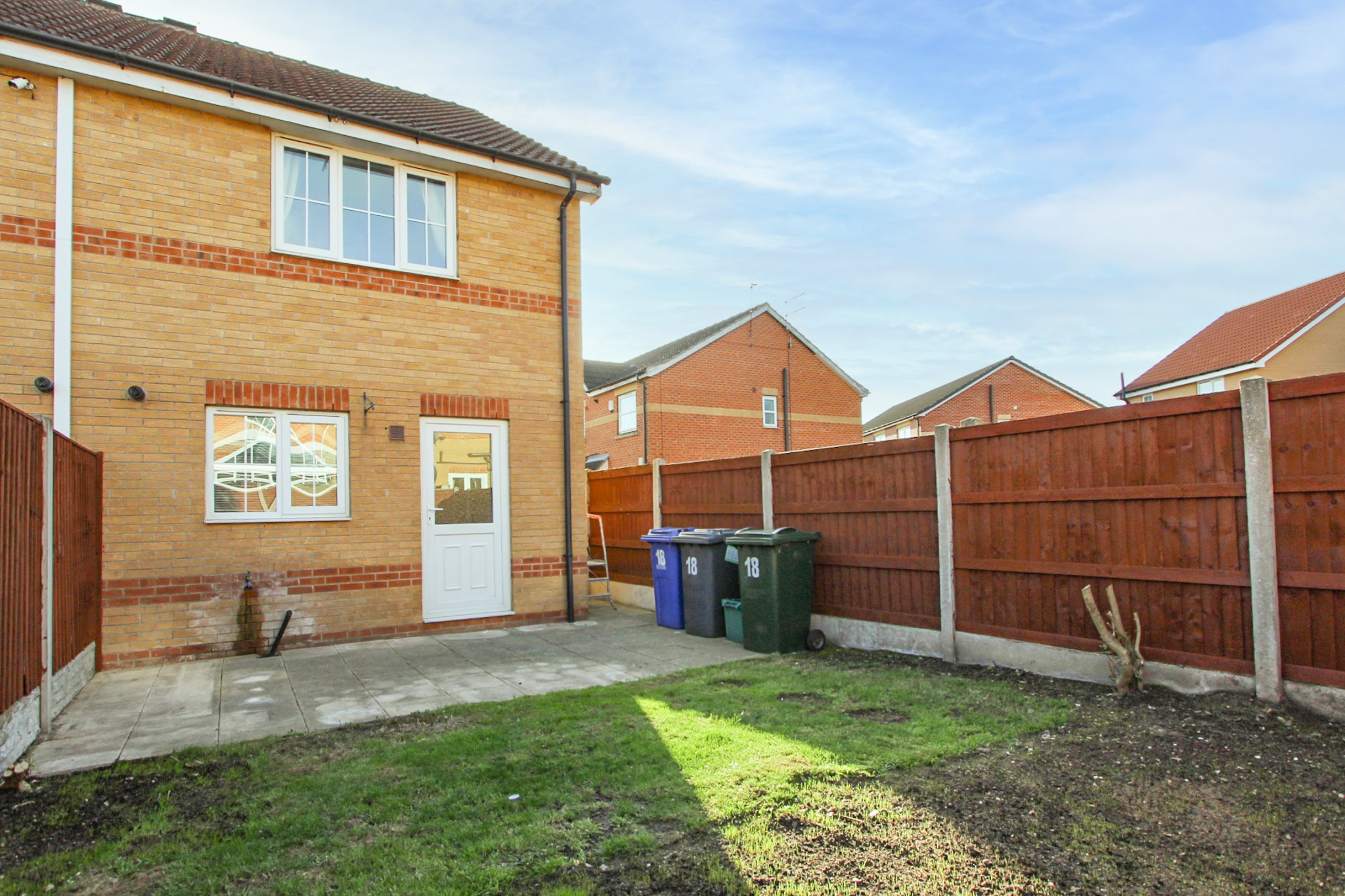 Enclosed rear garden which is mainly lawned. The garden can be accessed through a gate at the side of the property or though the external door in the kitchen.